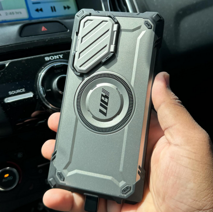 I went with the Supcase Unicorn Beetle MAG XT. It has MagSafe support that doesn’t interfere with the S-Pen (!). It has a metal door for the camera with a soft inside for the camera lenses. The camera bump stays raised when opening the door. The camera cover can alternatively be used as a stand. The buttons are fully closed, so no dust can collect there. The buttons are also very clicky. The frame is of rubber and the backside is of plastic. The rubber frame has a grippy texture. The S-Pen and charger cutouts are big and easily accessible. The insides have a soft layer to protect the back glass.